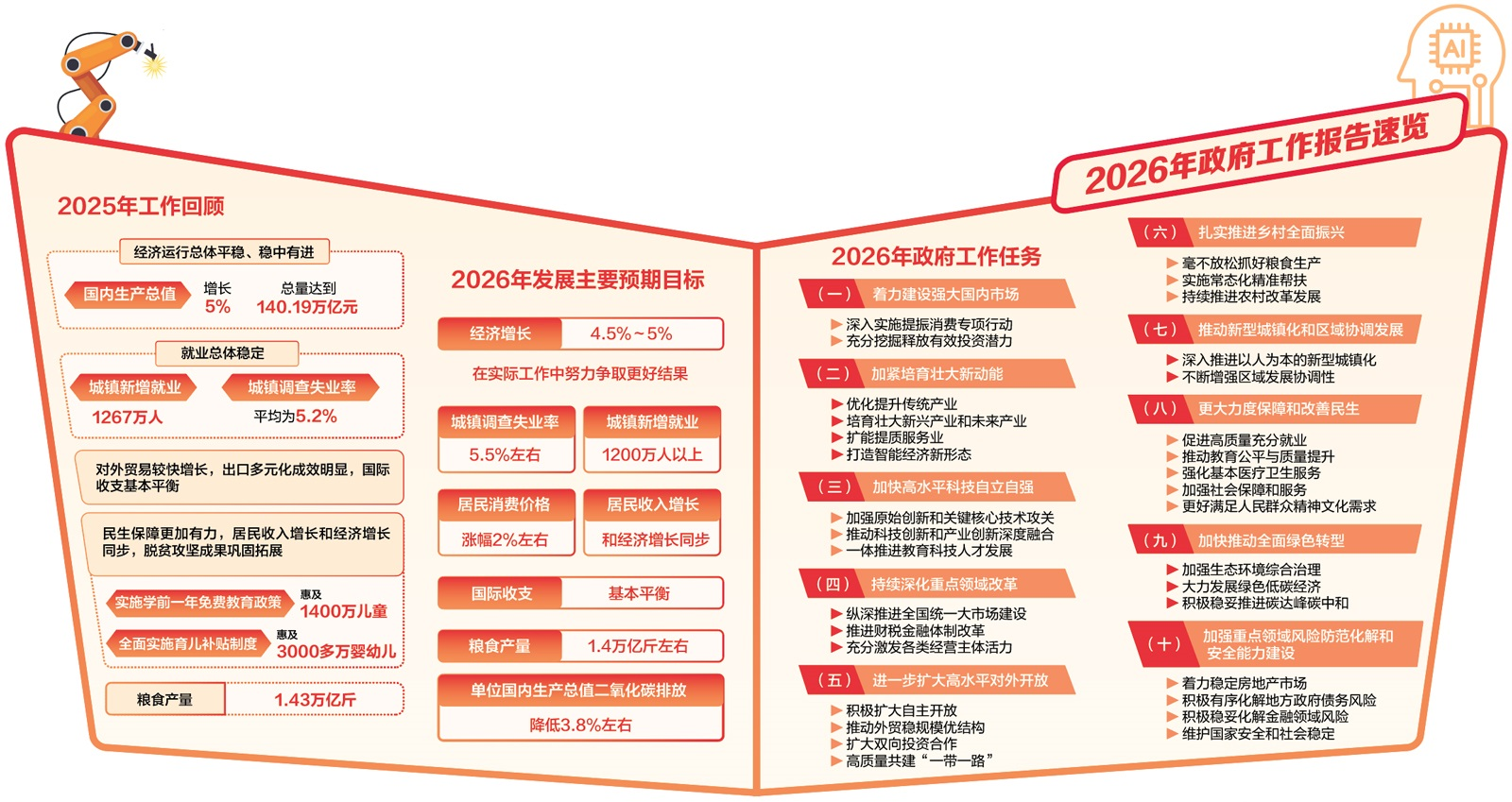 政府工作报告提出2026年发展主要预期目标,其中最受市场关注的是,今年国内生产总值(GDP)增长目标调整为“4.5%—5%”,并强调“在实际工作中努力争取更好结果”。这一目标设定,成为“十五五”开局之年备受关注的政策信号。